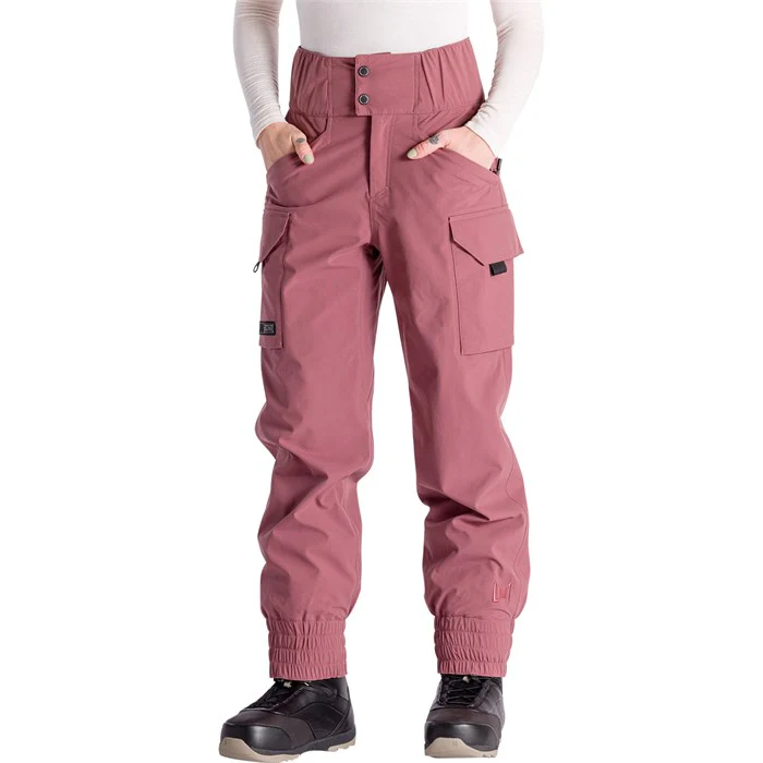 L1 new high-waisted scrunchie cargo military-inspired snow pant provides all-day comfort and style. 20k/20k protection from the elements and fashion-forward with the oversized cinched waist and tapered fit.